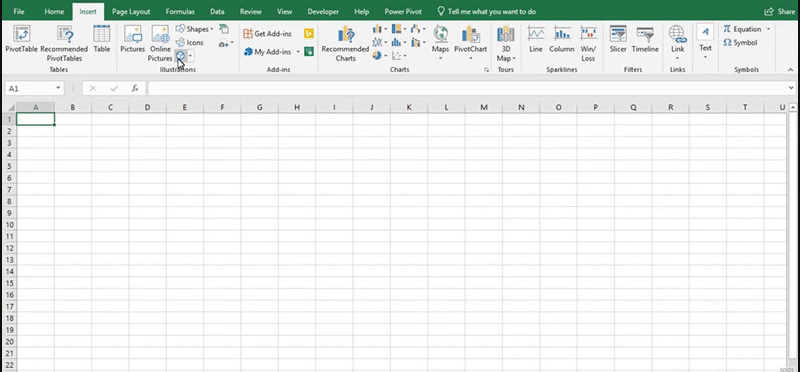 Excel has a variety of shapes that you can insert into your spreadsheet. To insert a shape, go to the Insert tab, Illustrations group and select Shapes.