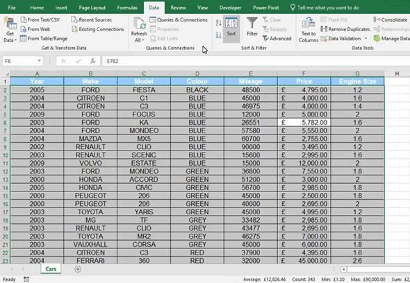 2. Go to the Data tab > Sort and Filter Group and select the Sort A-Z icon for your data to be in alphabetical order, or the Z-A icon if you want it in reverse alphabetical order.